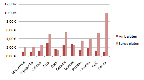 En aquest gràfic hi ha la comparació de preus amb gluten i sense gluten:
